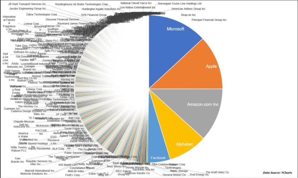 ci accorgeremo che il Dow Jones (ha il 6% delle aziende dello S&P) si discosta di poco dallo S&P 500. Questo vuol dire che non c’è bisogno di replicare l’S&P 500 comprando tutte le azioni che ci sono all’interno, ma magari la metà, cosi le 250 rimaste che mi complicherebbero la vendita perché poco scambiabili le ho eliminate.